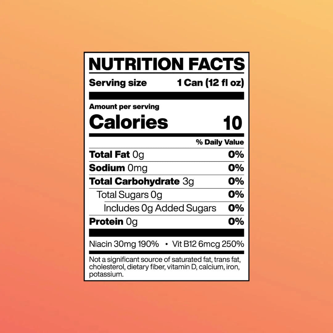 Carbonated Water, Citric Acid, Taurine, Natural Flavor, Sucralose, Colors, L-Phenylalanine, Alpha-Glyceryl Phosphoryl Choline, Caffeine, Theanine, Niacinamide, Cyanocobalamin.