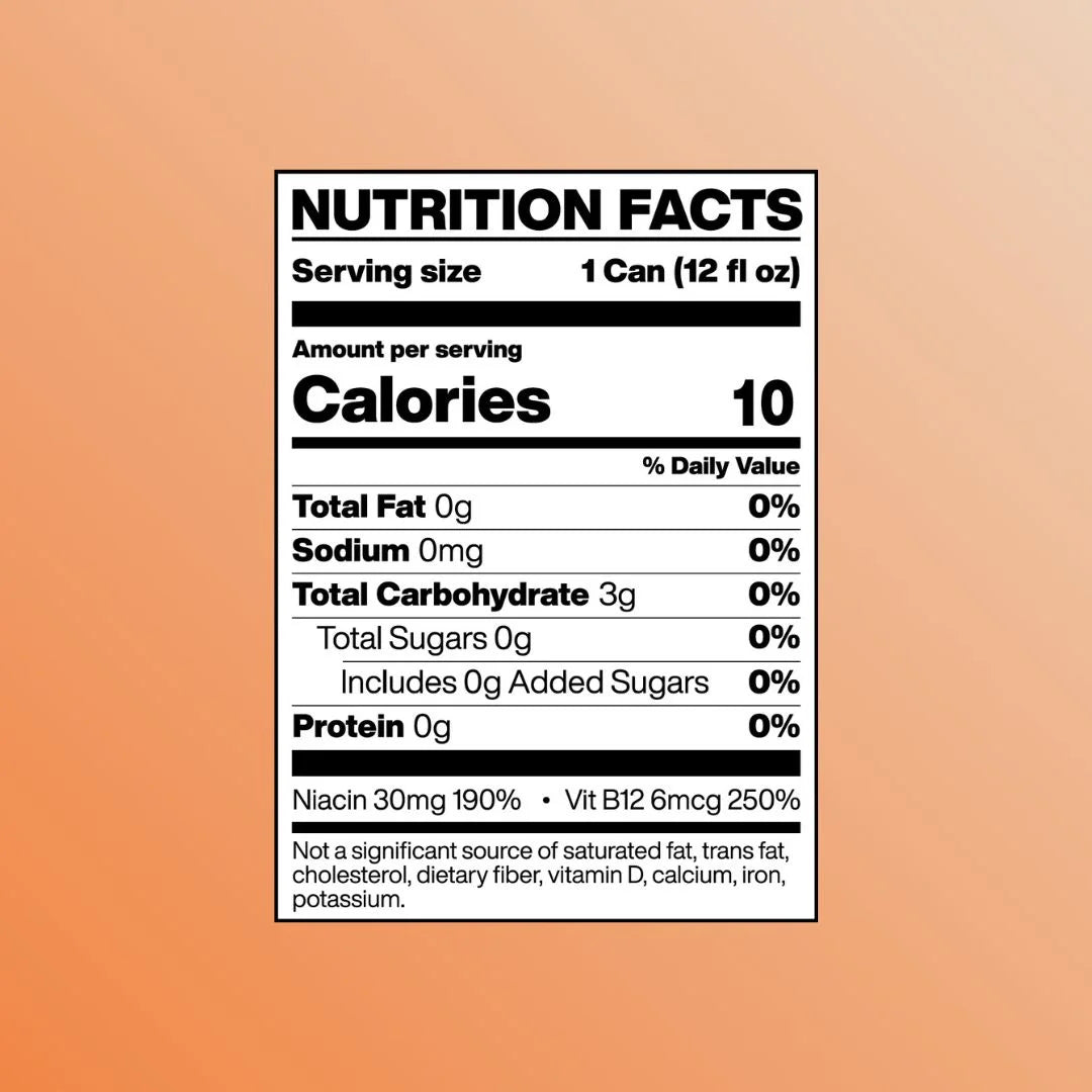 Carbonated Water, Citric Acid, Taurine, Natural Flavor, Sucralose, Colors, L-Phenylalanine, Alpha-Glyceryl Phosphoryl Choline, Caffeine, Theanine, Niacinamide, Cyanocobalamin.